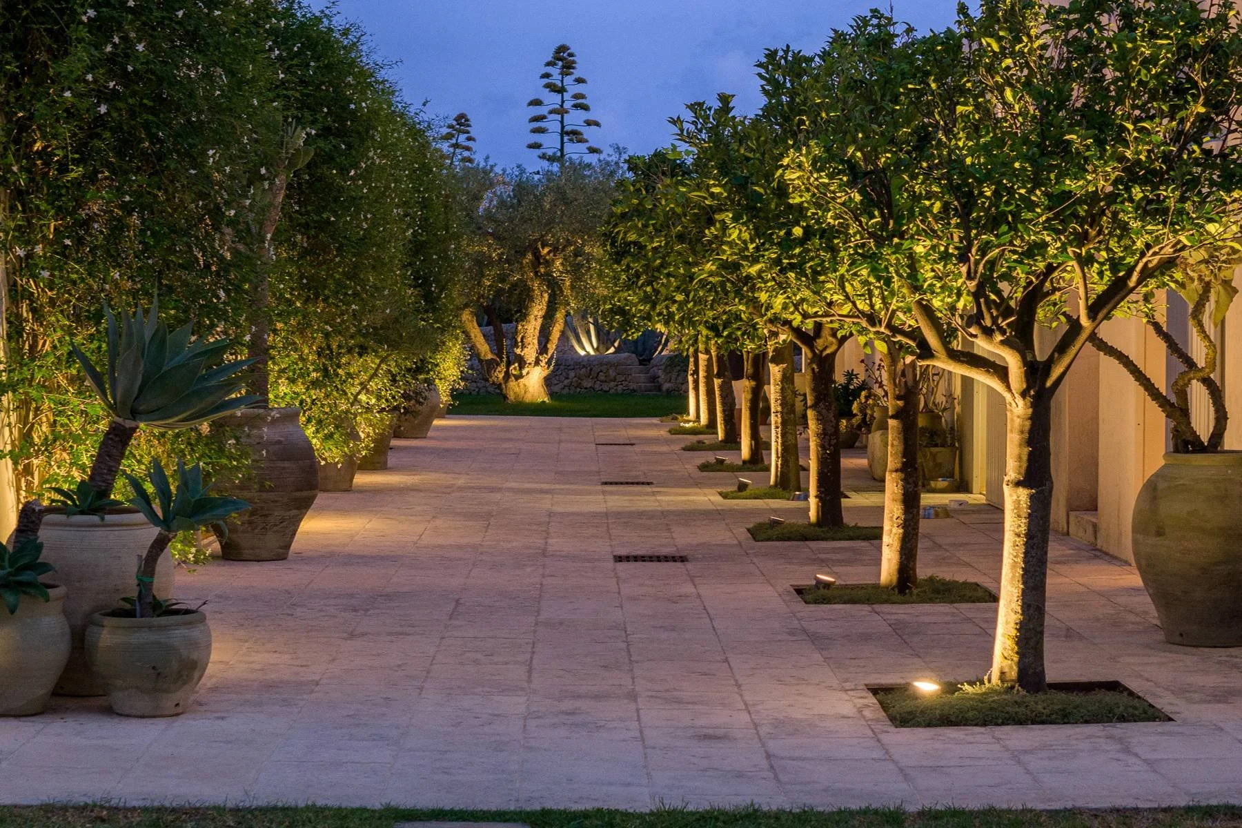 The garden, with its dry-stone walls, agaves, palm trees and centuries-old olive trees, is an authentic haven of peace, full of intimate corners for reading and spaces designed for socialising, surrounded by the scent of oranges and jasmine.